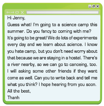 (Tìm 5 lỗi trong mẫu thư điện tử và sửa lại.)