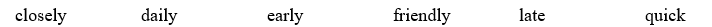 1 Some adverbs have the same form as the adjective: early, fast, weekly, monthly, yearly, etc.