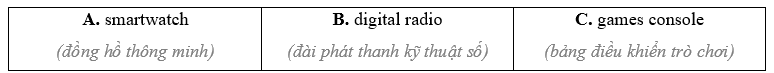 (Làm việc theo cặp. Ghép ba đồ dùng trong danh sách với ảnh A-C bên dưới. Kiểm tra xem bạn có hiểu nghĩa của tất cả các từ còn lại không.)