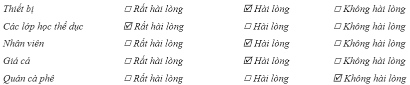 (Bạn hài lòng với những điều sau đây như thế nào?)