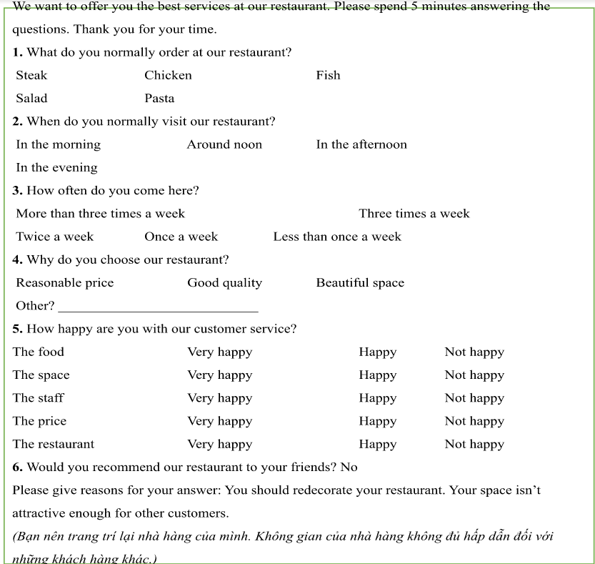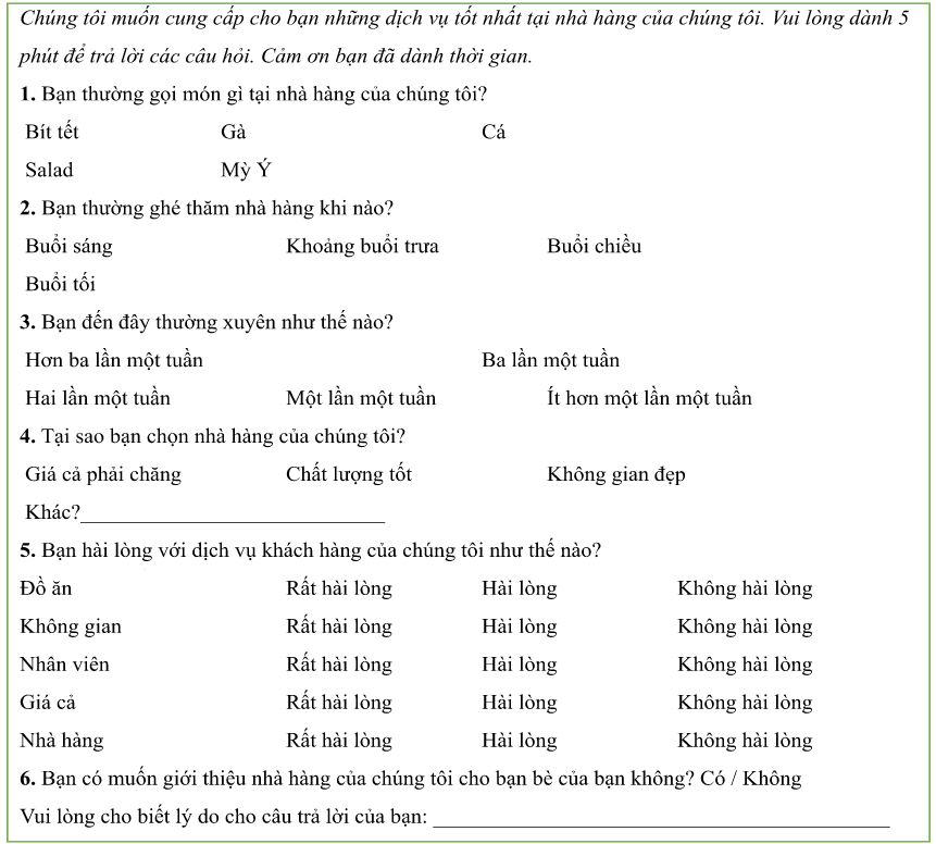 (Bạn hài lòng với dịch vụ khách hàng của chúng tôi như thế nào?)