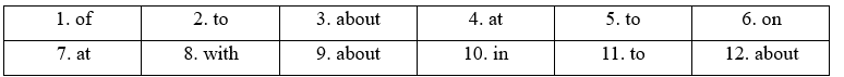 (Hoàn thành văn bản với about, at, in, of, on, to hoặc with.)