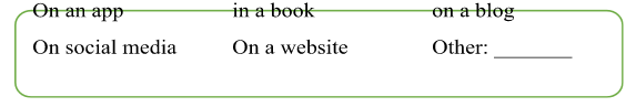 (Bạn có thường xuyên sử dụng mạng Internet để tìm kiếm thông tin về những điều này không? Dùng các từ”never – không bao giờ”, “sometimes – đôi khi”, hoặc “often – thường”.)