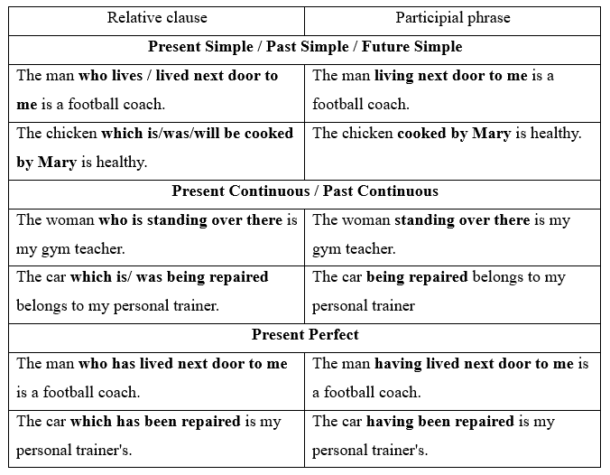 • Cụm phân từ có thể được dùng để thay thế mệnh đề quan hệ.
