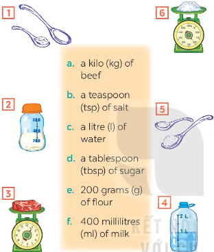1 – b: a teaspoon (tsp) of salt: 1 muỗng cà phê muối