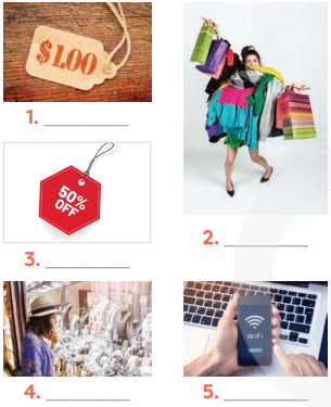 1. Write the words and phrases under the correct pictures. 2. Match the shopping places with their characteristics. 3. Complete the sentences with the words and phrases from the box. 4. Listen and repeat the words. Pay attention to the sound /sp/ and /st/. 5. Listen and repeat the sentences. Pay attention to the underlined words.
