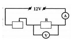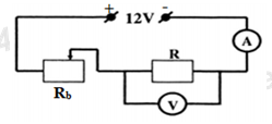Nguồn điện có hiệu điện thế không đổi là 12V, điện trở mạch ngoài \(R = 12\Omega \). Phải điều chỉnh biến trở có điện trở là bao nhiêu để vôn kế chỉ 3V?