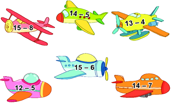 – Những máy bay ghi phép trừ có hiệu bằng 7 là 15 – 8, 12 – 5, 14 – 7.