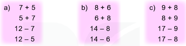 12 – 5 = 7                15 – 6 = 9                  14 – 7 = 7