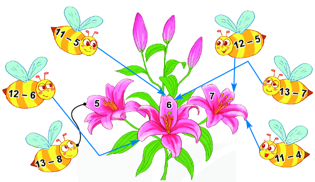 11 – 5 = 6 ;          11 – 6 = 5 ;               11 – 4 = 7.