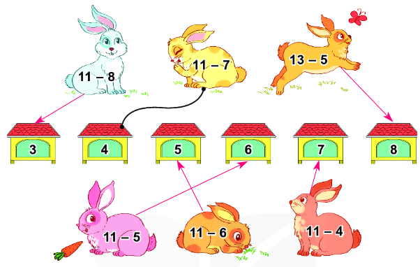 11 – 5 = 6 ;          11 – 6 = 5 ;               11 – 4 = 7.