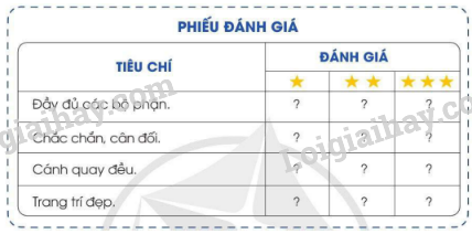 Câu hỏi 2: Nhận xét sản phẩm của các bạn theo mẫu phiếu đánh giá sau.