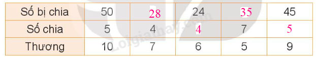 – Muốn tìm số chia ta lấy số bị chia chia cho thương.
