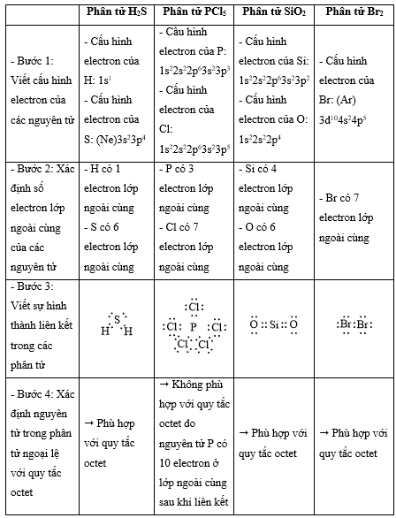 + Bước 3: Viết sự hình thành liên kết trong các phân tử