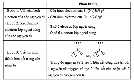 Dùng công thức Lewis để biểu diễn phân tử SO3 sao cho phù hợp với quy tắc octet. Chỉ rõ các liên kết trong phân tử thuộc loại liên kết nào.