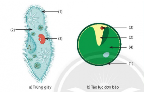 (1) màng tế bào (2) chất tế bào  (3) nhân tế bào  (4) lục lạp