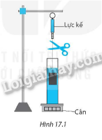 Treo khối sắt vào lực kế và từ từ những vật ngập vào trong ống trụ chứa nước đặt trên một cái cân (Hình 17.1).