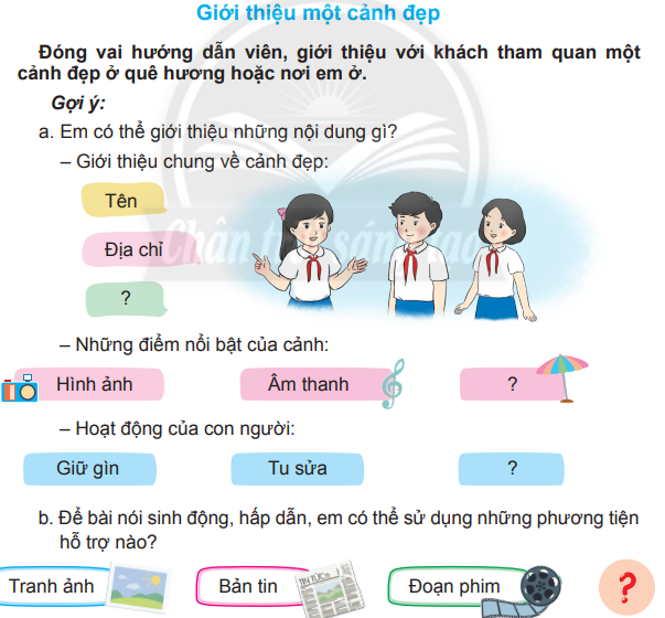 Đóng vai hướng dẫn viên, giới thiệu với khách tham quan một cảnh đẹp ở quê hương hoặc nơi em ở