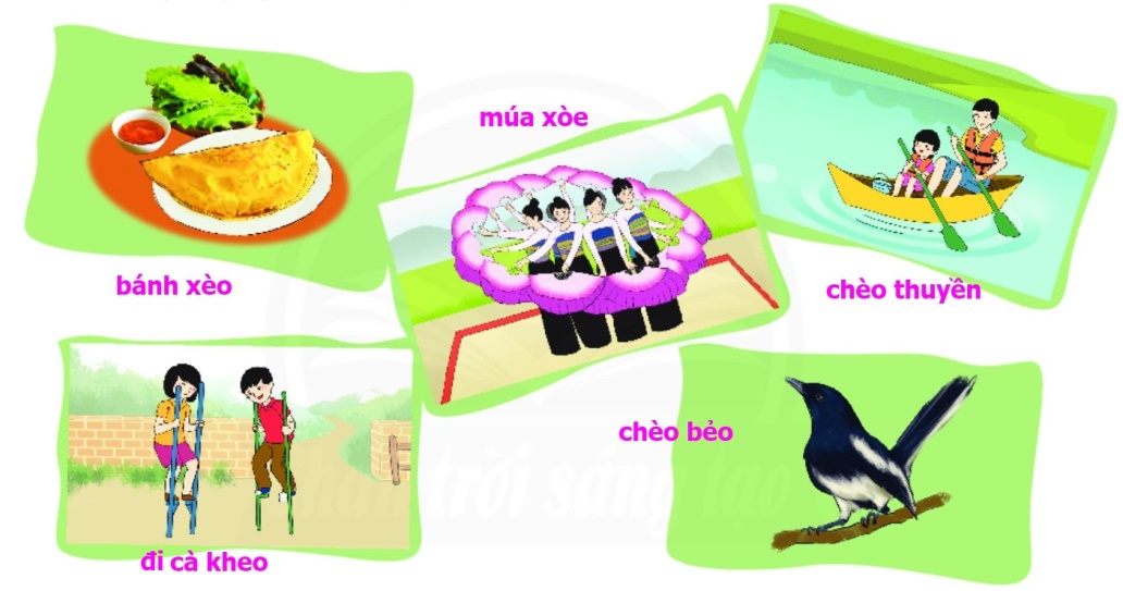 Câu b: Tìm từ ngữ chứa tiếng có vần eo hoặc vần oe gọi tên từng sự vật, hoạt động dưới đây: