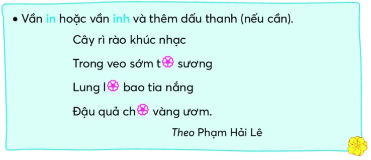 • Vần in hoặc vần inh và thêm dấu thanh (nếu cần).