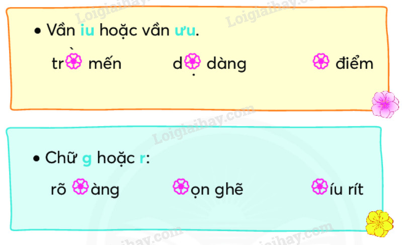 c. Chọn chữ hoặc vần thích hợp với mỗi ô hoa: