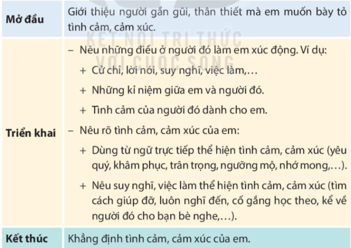 Đề bài: Viết đoạn văn nêu tình cảm, cảm xúc về một người gần gũi, thân thiết.