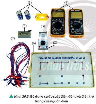 1. Dựa vào cơ sở lí thuyết và dụng cụ trong Hình 20.3, hãy thảo luận nhóm để đưa ra một phương án thí nghiệm xác địnhξ và của r pin.