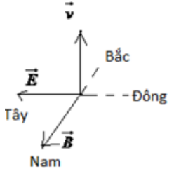 + Do \(\overrightarrow E ,\overrightarrow B \)cùng pha => B cực đại thì véctơ cường độ điện trường E cũng có độ lớn cực đại và hướng về phía Bắc
