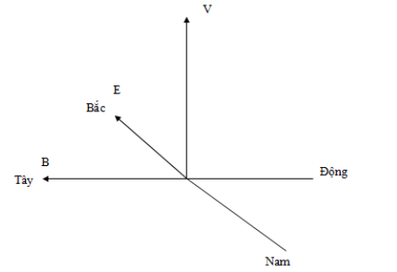 Các vecto \(\vec E,\vec B,\overrightarrow v \) tuân theo quy tắc bàn tay trái: Xòe bàn tay trái, \(\vec E\) hướng theo chiều của 4 ngón tay, \(\vec B\) hướng vào lòng bàn tay, \(\overrightarrow v \) hướng theo chiều ngón tay cãi choãi ra.