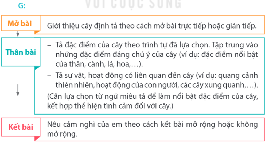 – Lựa chọn trình tự miêu tả cây: tả từng bộ phận của cây.