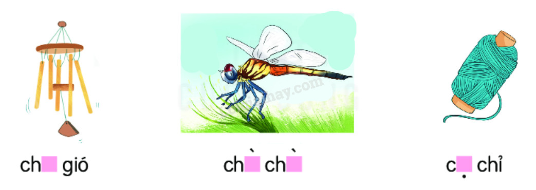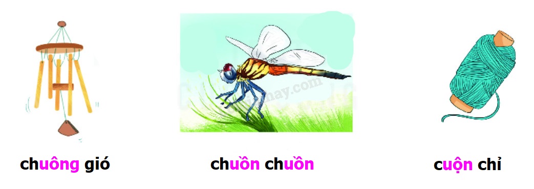 b. chuông gió, chuồn chuồn, cuộn chỉ