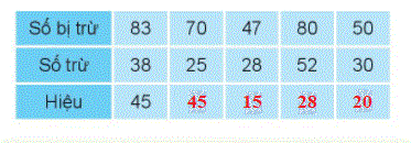 Áp dụng công thức: Số bị trừ – Số trừ = Hiệu.