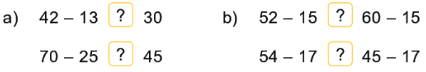 Thực hiện tính kết quả phép tín sau đó so sánh hai vế để tìm được dấu so sánh thích hợp với dấu “?” ở trong ô