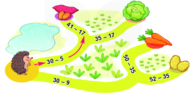 Mà 25 > 21, do đó tại ngã rẽ đầu tiên, bạn nhím sẽ đi theo con đường ghi phép tính 30 – 5.