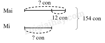 Mai và Mi cùng nhau gấp được 154 con hạc giấy. Mai gấp nhiều hơn Mi 12 con hạc giấy. Hỏi mỗi bạn gấp được bao nhiêu con hạc giấy?