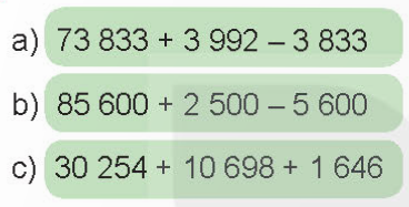 b) 85 600 + 2 500 – 5 600 = (85 600 – 5 600) + 2 500