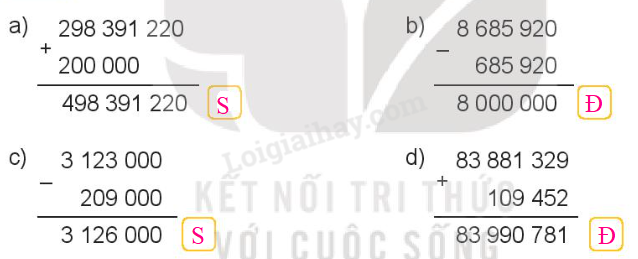 – Cộng hoặc trừ lần lượt từ phải sang trái.