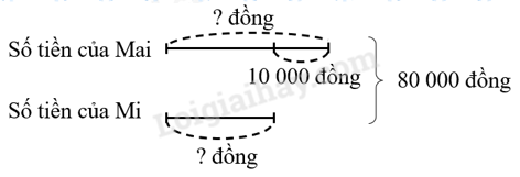Đáp số: Mi: 35 000 đồng; Mai: 45 000 đồng.