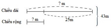 Một mảnh đất hình chữ nhật có chu vi là \(86m\). Biết nếu chiều rộng tăng thêm \(8m\), chiều dài giảm đi $17m$ thì mảnh đất đó có dạng hình vuông. Diện tích mảnh đất đó là: