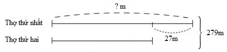 Hai người thợ dệt được \(258m\) vải. Nếu thợ thứ nhất dệt thêm \(36m\) vải và thợ thứ hai dệt bớt đi \(15m\) vải thì thợ thứ nhất sẽ dệt nhiều hơn thợ thứ hai là \(27m\) vải. Hỏi mỗi người thợ dệt được bao nhiêu mét vải?