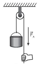 Một công nhân xây dựng sử dụng ròng rọc để kéo một thùng sơn nặng 27 kg lên dàn giáo cao 3,1 m so với mặt đất. Lực mà người công nhân kéo theo phương thẳng đứng có độ lớn 310 N. Lấy g = 9,8 m/s2