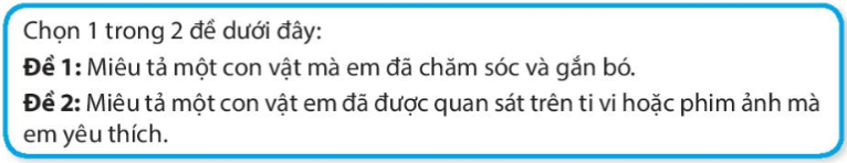 Lựa chọn con vật để miêu tả. Quan sát hoặc nhớ lại kết quả đã quan sát. Lựa chọn trình tự miêu tả. Lập dàn ý. Lựa chọn được các đặc điểm nối bật của con vật.