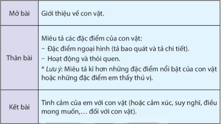– Lựa chọn trình tự miêu tả: miêu tả đặc điểm ngoại hình và hoạt động thói quen.
