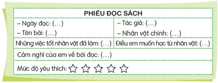 Tìm đọc bài về một nhân vật được mọi người quý mến, cảm phục và viết phiếu đọc sách theo mẫu. Chia sẻ với bạn về điều em muốn học từ nhân vật