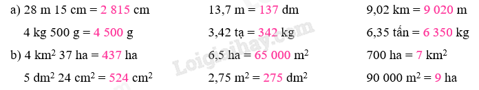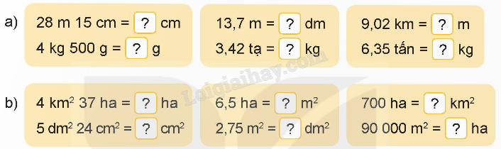 Dựa vào cách đổi: 1 km2 = 100 ha; 1 km2 = 1 000 000 m2
