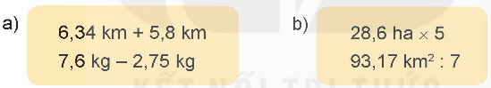Thực hiện tính như các phép tính đối với số tự nhiên, sau đó ghi đơn vị đo vào sau kết quả tìm được.