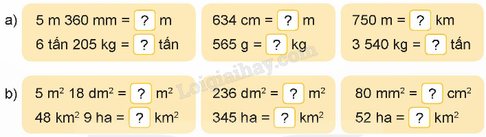 a) Trong bảng đơn vị đo độ dài, bảng đơn vị đo khối lượng, đơn vị bé bằng $\frac{1}{{10}}$ đơn vị lớn hơn tiếp liền.