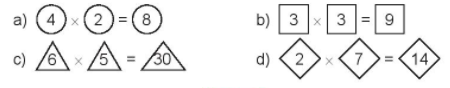 Xác định thừa số và tích trong mỗi phép nhân rồi tô màu thích hợp.
