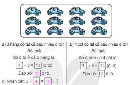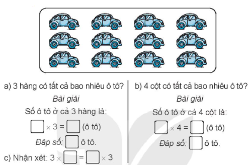 a) Số ô tô ở 3 hàng = Số ô tô ở mỗi hàng x 3