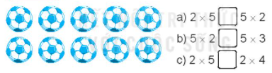 Viết tích thành tổng các số hạng bằng nhau rồi tính (theo mẫu): Mẫu: 6 x 3 = 6 + 6 + 6 = 18. Vậy 6 x 3 = 18 a) 3 x 4 = …………………………………… = ……… Vậy 3 x 4 = ……… b) 4 x 3 = …………………………………… = ……… Vậy 4 x 3 = ……… c) 2 x 7 = …………………………………… = ……… Vậy 2 x 7 = ……… Tô màu đỏ vào các thừa số, màu xanh vào tích tương ứng trong mỗi phép nhân sau
